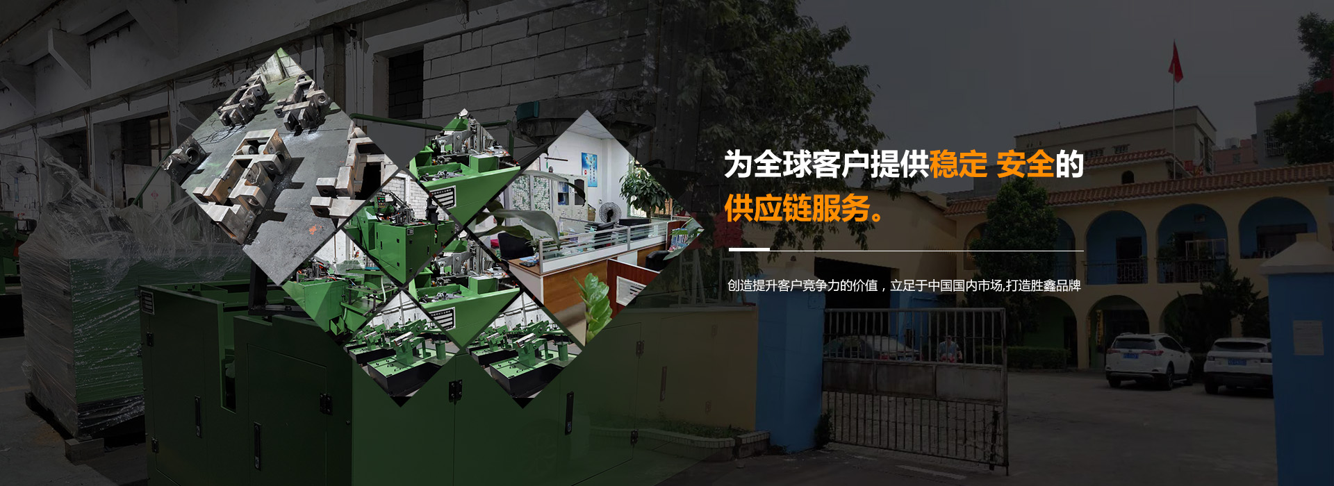 東莞市勝鑫五金機械有限公司成立于2013年,是一家集設計開發(fā)、生產(chǎn)制造,質(zhì)量管控,物流平臺于一體緊固件生產(chǎn)設備整體解決方案綜合性企業(yè)。本廠擁有經(jīng)驗豐富專業(yè)機械設計開發(fā)團隊及配置高精密度的加工、質(zhì)量控制設備用于精密機械制造。本公司專業(yè)制造合模機、開合模機、打頭機、冷鐓機、搓牙機、一模二沖打頭機、四模四沖螺絲成型機等緊固件生產(chǎn)設備并提供各機型配件生產(chǎn)支持,以經(jīng)驗豐富的專業(yè)設計及以先進生產(chǎn)技術(shù),優(yōu)質(zhì)服務,提供適合客戶需求的各類緊固件生產(chǎn)設備,設備廣泛使用于各類緊固件生產(chǎn),并可根據(jù)客戶要求,為客戶設計制造各種非標螺絲機械,并提供調(diào)試,配件供應及專業(yè)維修服務。結(jié)合客戶的個性化需求,真誠服務。以長期、穩(wěn)健、創(chuàng)新的經(jīng)營風格,精密的專業(yè)技術(shù)、優(yōu)質(zhì)的產(chǎn)品、準時的納期,建立了良好的評價與信譽,受到了新老客戶的廣泛支持、肯定與信賴。 創(chuàng)造提升客戶競爭力的價值,立足于中國國內(nèi)市場,打造勝鑫品牌,為全球客戶提供穩(wěn)定的安全的供應鏈服務。